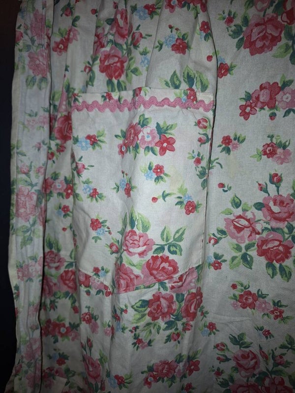 Wunderschöne Schürze die ganz einfach über Kreuz im Rücken zu binden ist, dafür sind die Bänder lang genug sogar für Ihren Ehemann oder Partner. Die Schürze hat unten ein Volant und zwei praktische Taschen.