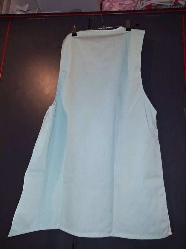 Grünliche Berufsschürze für die Reinigung, Verkauf, in Altersheimen undd Privat. Für Sie und Ihn. Die praktische Schürze hat zwei Taschen in an der Seite durch Druckknöpfe in der Weite regulierbar.