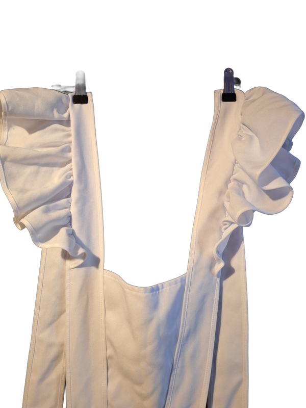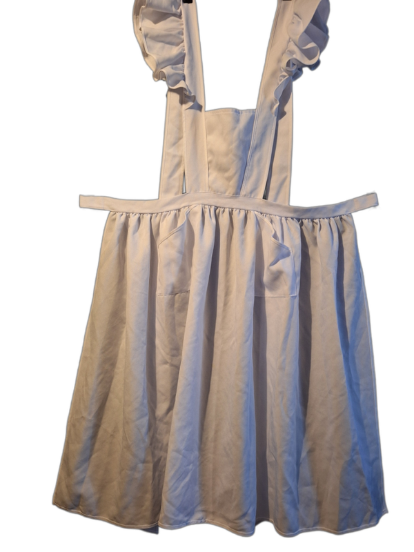 Längere weich fliessende Baumwoll Zofenschürze mit Rüschen