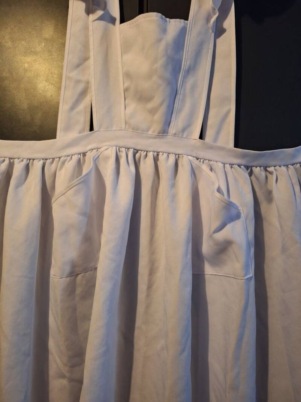 Grosse Zofenschürze mit grossen Rüschen an den Bindebänder. Diese Schürze passt zu langen Zofenkleider. Die Schürze ist in weich fliessender Baumwoll Qualität und hat zwei Taschen ist gepflegt und sehr, sehr wenig gebraucht und sicher ein schwer zu findendes Schürzenstück.