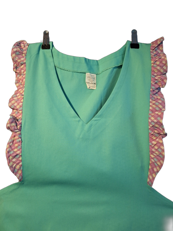Schöne Überwurfschürze zum seitlichen Binden mit Rüschen.