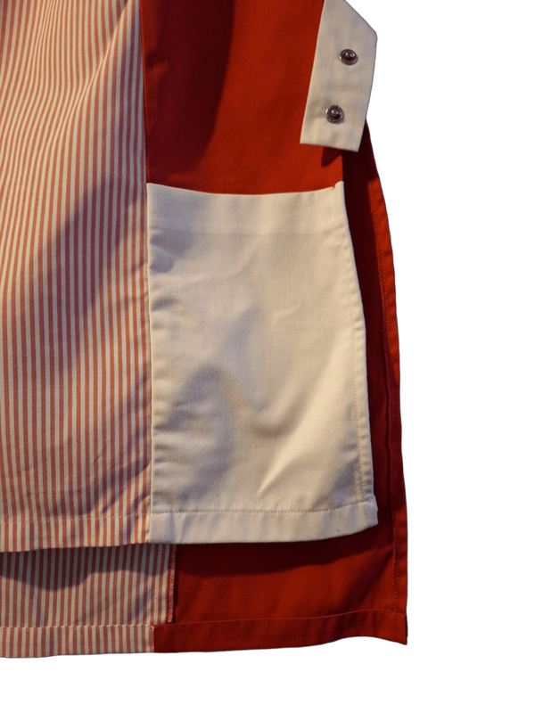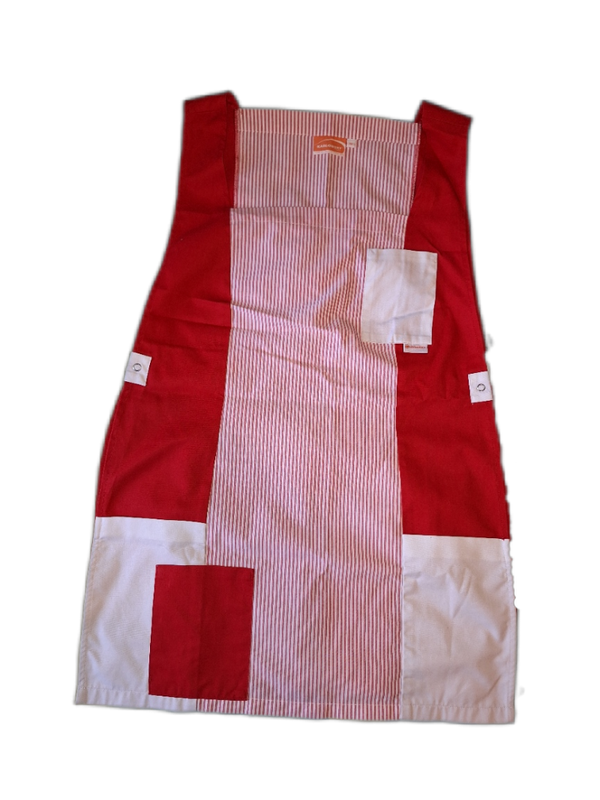 Überwurfschürze mit farbenfrohes rotweisses Design Grösse 42/48