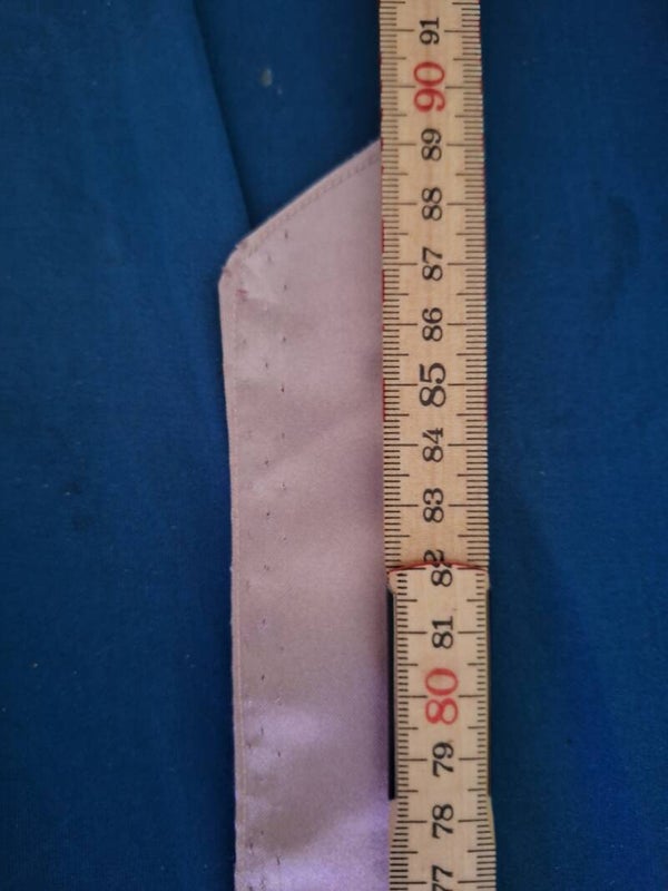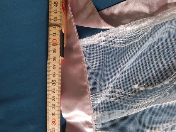 Die schürze misst in der Taille 40cm, in der länge ist die Schürze 55cm und die Bänder sind 90cm lang