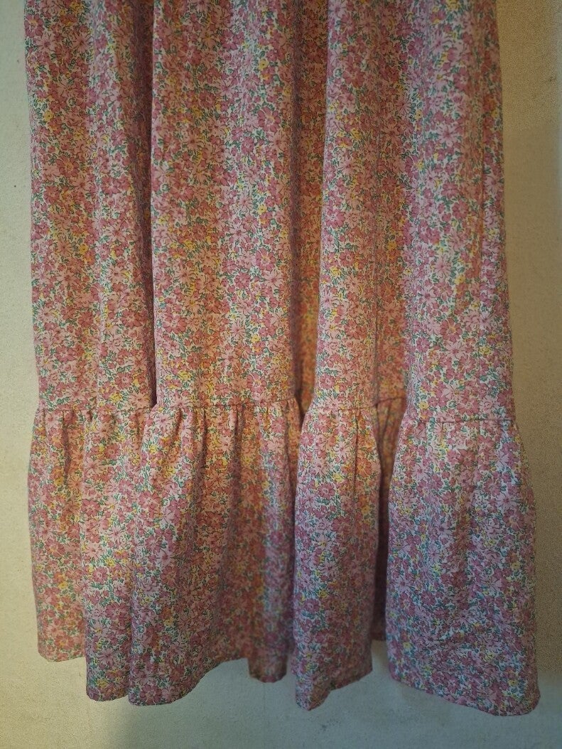 Leichtes langes (118cm) sommerkleid mit Rüschen und unten einem breiten Volant Taille mit Gummizug von 38-mindestens 46cm eine Seite gemessen keine taschen